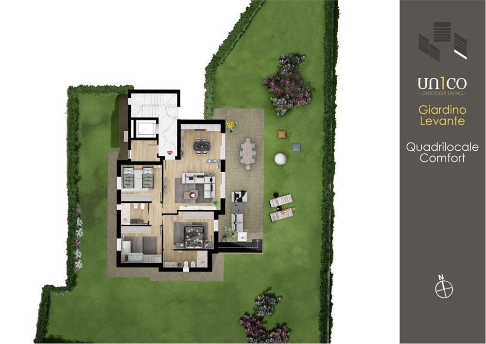 UN1CO - QUADRILOCALE CON PORTICO E GIARDINO PRIVATO - V000614
